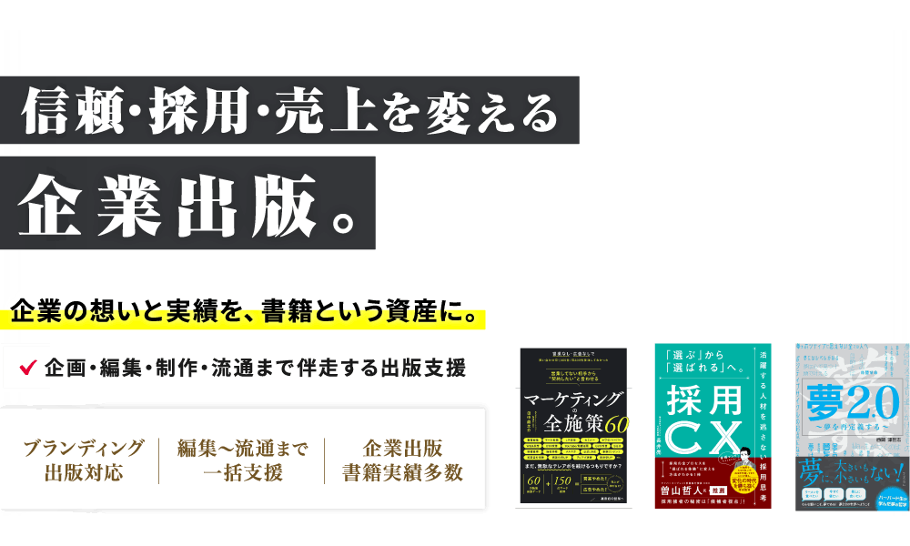 ただの本づくりではなく、御社の想い・価値・強みを読者に響く形で具現化します。